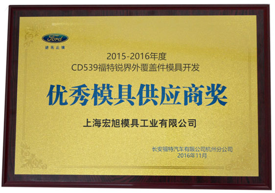 长安福特锐界、金牛座等车型外覆盖件模具开发“优秀模具供应商奖”